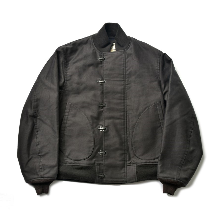 デッキクルーたちによって着用されたジャケットの生地は、直射日光や雨風により、当然、褪色するが、その絶妙な色を黒で表現している。¥68,200_(BUZZ RICKSON’S Tel.03-3632-2321)