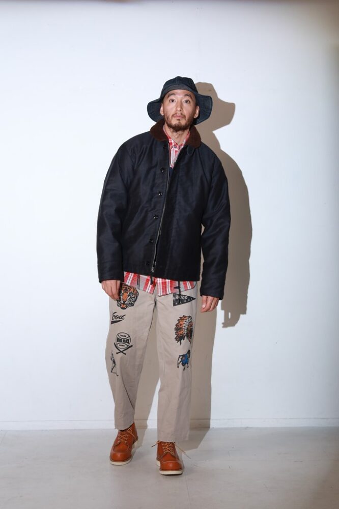 1940年代のU.S.N.デッキジャケットから着想を得たサウンユース仕様のN-1。ユーモラスなグラフィックが描かれたスコードロンパッチが左胸に付けられたキャッチなー一着。¥31,680_(STUDIO D’ARTISAN INTERNATIONAL Tel.06-6536-6328)