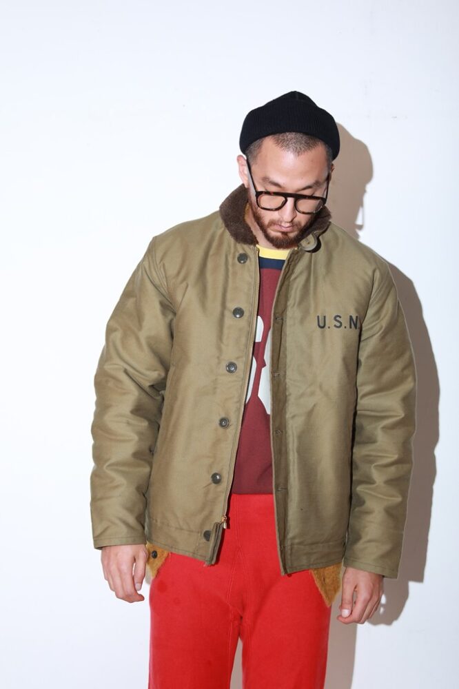 冬には冷たい強風が吹き付け、当然、海上を主戦場とするため、ファスナーが錆び付いて、ジャケットが開閉できなくなることを想定し、ボタンフライとの二重にするなど、過酷な環境でも、しっかりと兵士の命を守るために作られた。