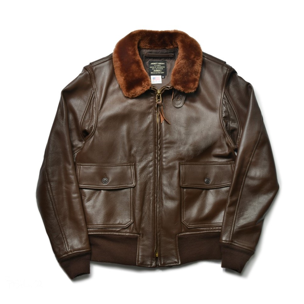 ムートン襟とチンストラップ、アクションプリーツなど、ヴィンテージのG-1のディテールを踏襲。タンニン鞣しのゴートレザーを使用し、ユーズドライクに仕上げている。¥129,800_(AVIREX SHINJUKU Tel.03-5367-2013)