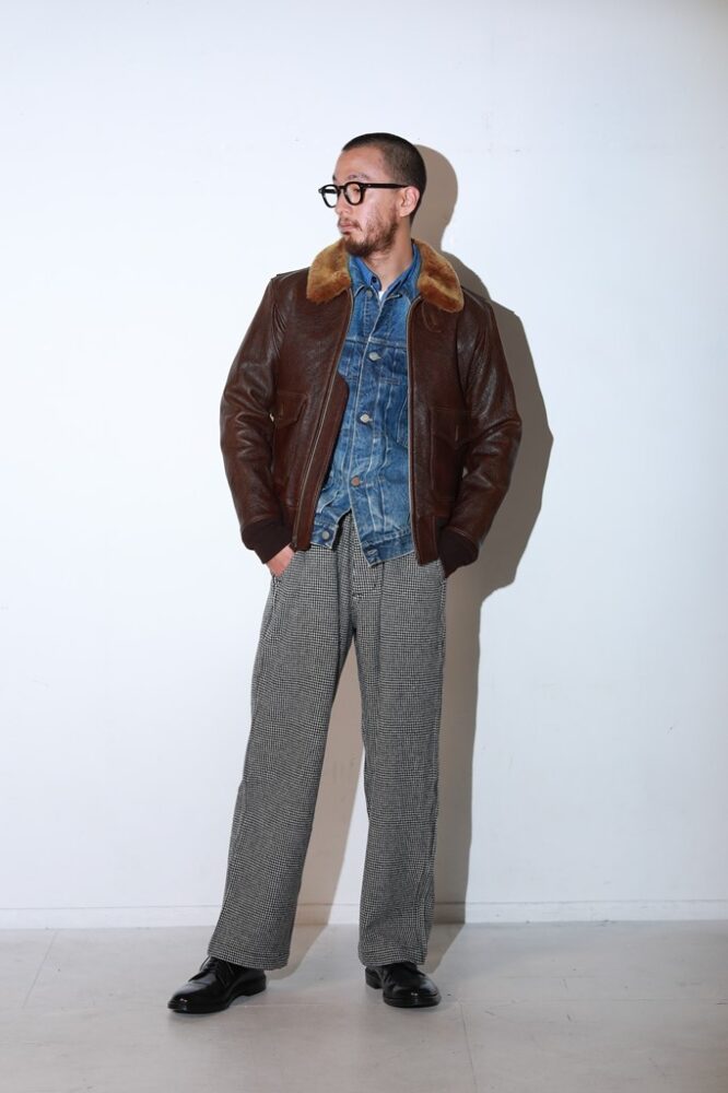静岡を拠点にアメリカンカジュアルスタイルを提案するBarnStormer&Co.が革から別注して製作したAN-J-3A。マテリアルには上質なホースハイドを使用し、特有の経年変化も楽しめる。¥198,000_(BarnStormer&Co. Tel.0550-78-7758)