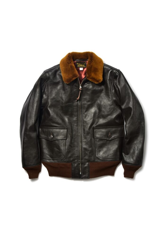 マテリアルにはタンニン鞣し、ピグメント仕上げを施したシールブラウンのホースハイドを使用したTYPE AN-J-3A。レーヨンライニングを配した希少なモデルを再現している。¥286,000_(The REAL McCOY’S TOKYO Tel.03-6427-4300)