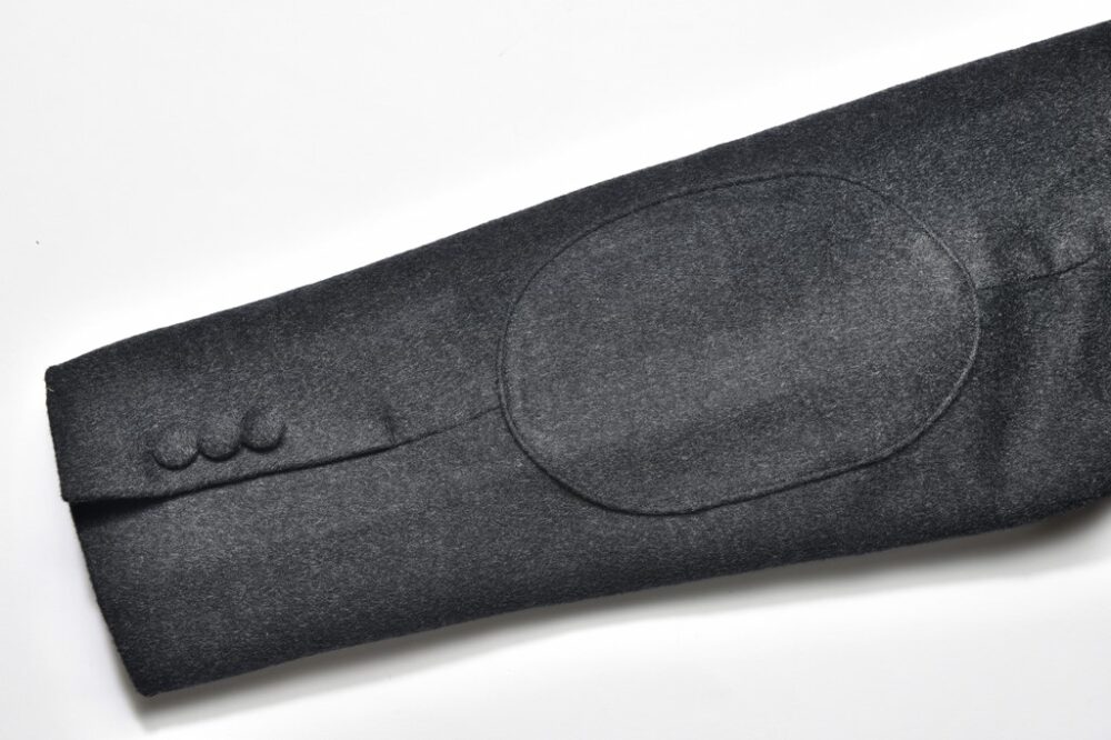 肌触りの良い上質なカシミヤ混のファブリックはイタリアの名門ロロピアーナ社の生地を採用。ドレスシーンで活躍するジャケットながらエルボーパッチが付けられた遊び心満載のジャケット。¥88,000_(琵琶湖平安樓 Tel.077-594-1901)