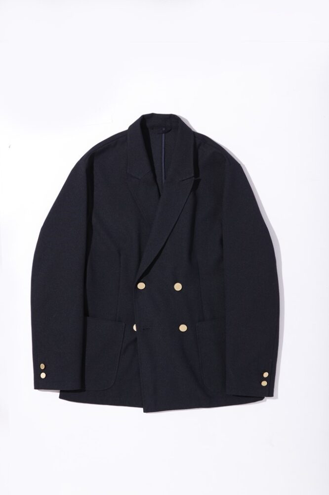 幅狭のピークドラペルにダブルブレストのアンコンジャケットはカジュアルシーンでも活躍する1着。カフス部分のボタンは本切羽仕様となっており、テーラードの本格的な作りも楽しめる。¥44,000_(Traditional Weatherwear LUMINE Yurakucho Tel.03-6810-0388)