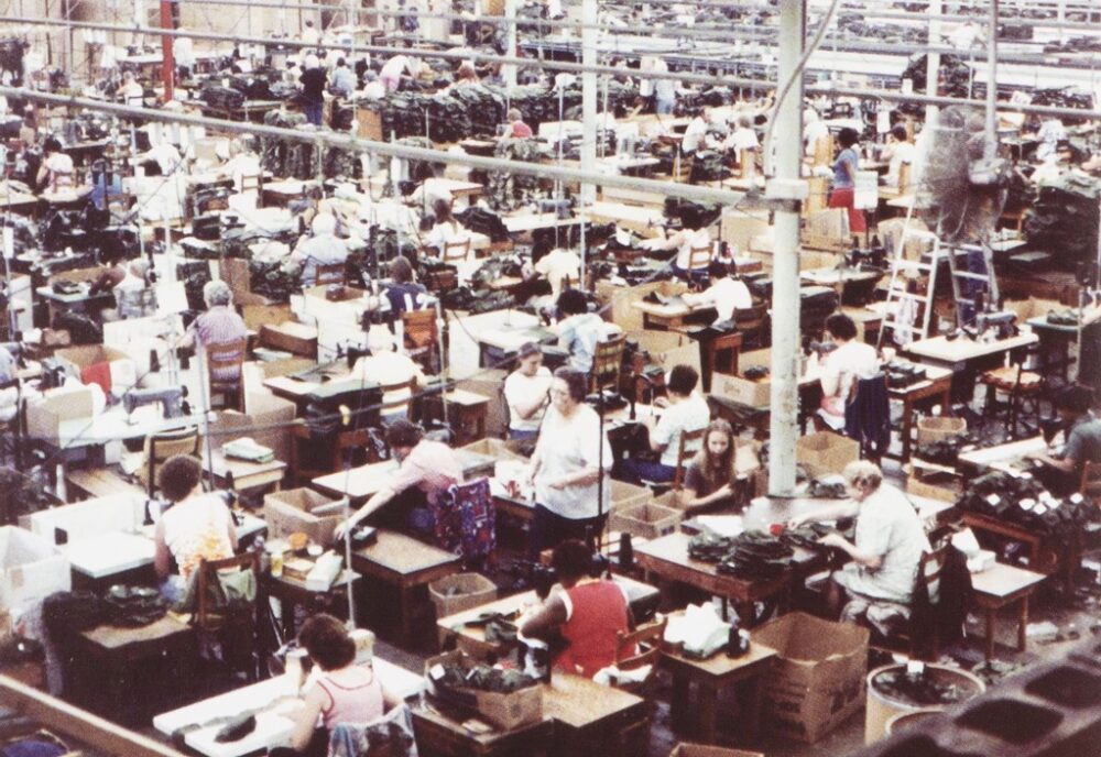 1980年代のファクトリー。当時もテネシー州ノックスビルにて生産していた。MA-1は1961年からライニングがレスキューオレンジに切り替わり、他社を圧倒する着数を米軍に納入し続けた。長きにわたりMIL-SPECを満たした製品を納入し続けた実績が評価され、米国防総省から表彰もされた。