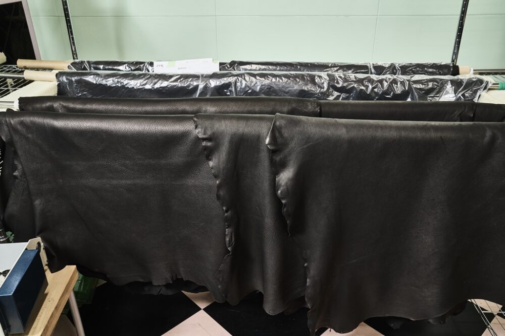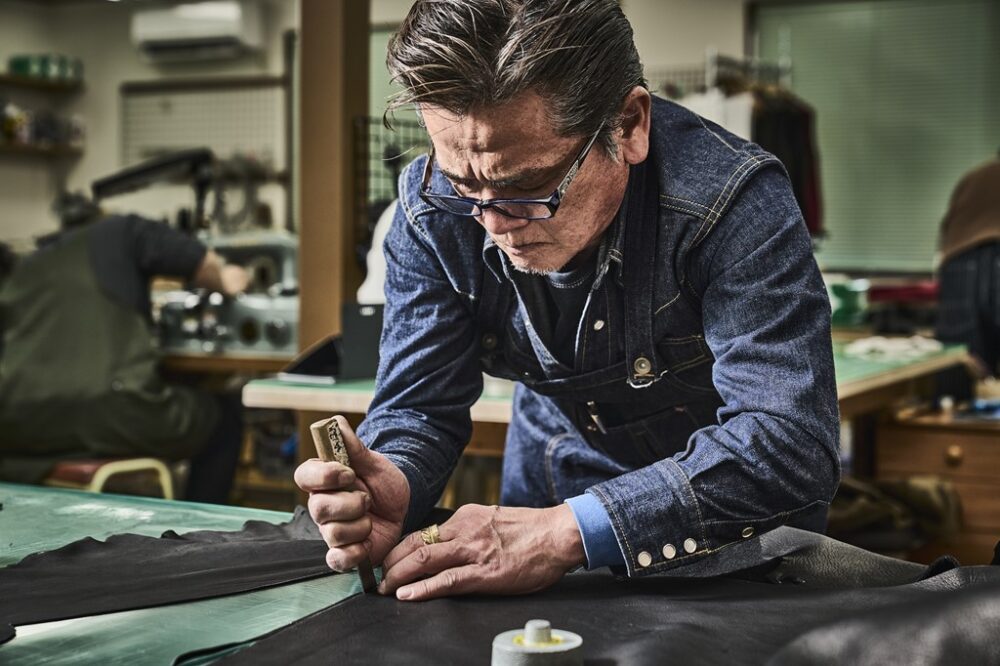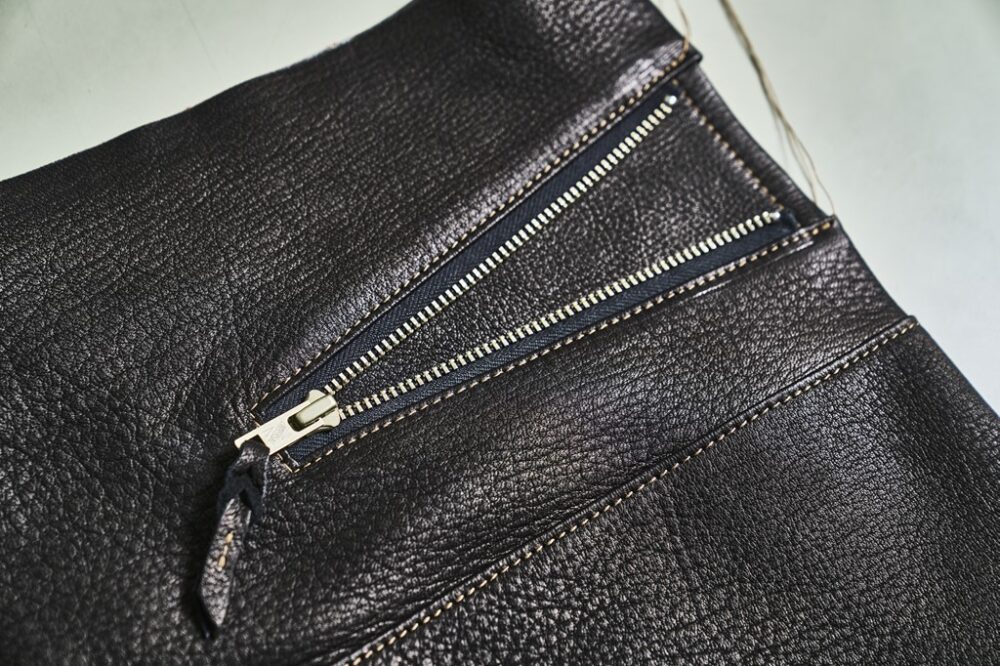「THE FLAT HEADでは、20年来の付き合いのある奈良のタンナー【藤岡勇吉本店】の1.3㎜厚フルベジタブルタンニン鞣しの鹿革を使っています。鹿革は伸縮性もあり粘りも強く、裁断や縫製など、馬や牛といった他の革と比べて、とても難しいんです。傷も多いため、非常に気を使いますね」