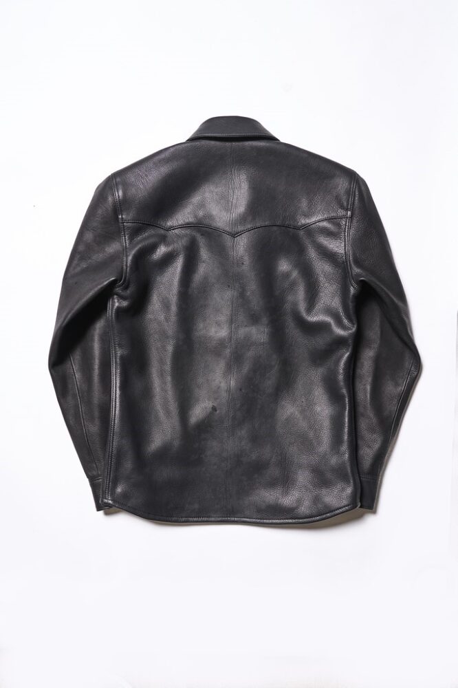 THE FLAT HEADのディアスキンアイテムを一躍有名にしたディアスキンシャツLS-DS001をアップデートさせ、さらなる進化を遂げた新モデル。1.3㎜厚の渋鞣しの鹿革を使用、鹿革の背骨部分を背中心に配し、袖も1枚革とするなど贅沢な造りとなっている。ウエスタンヨークが付き、フロントは水牛ボタン仕様。29万4800円