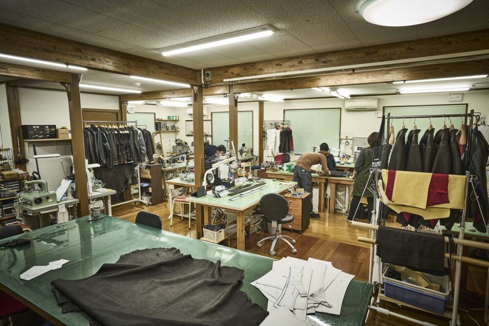 現在、THE FLAT HEADのアイテムには、自社で作るスペシャルラインと外部工場で作るラインが存在する。中でも鹿革や馬革のジャケットは、長野県千曲市にあるTHE FLAT HEADの自社工房「ストックバーグ」で裁断から縫製まで一貫して生産されている。現在、ストックバーグの職人は約10名。THE FLAT HEADの珠玉のレザーウエアは、職人たちの丁寧な手仕事を経て産声を上げているのだ。