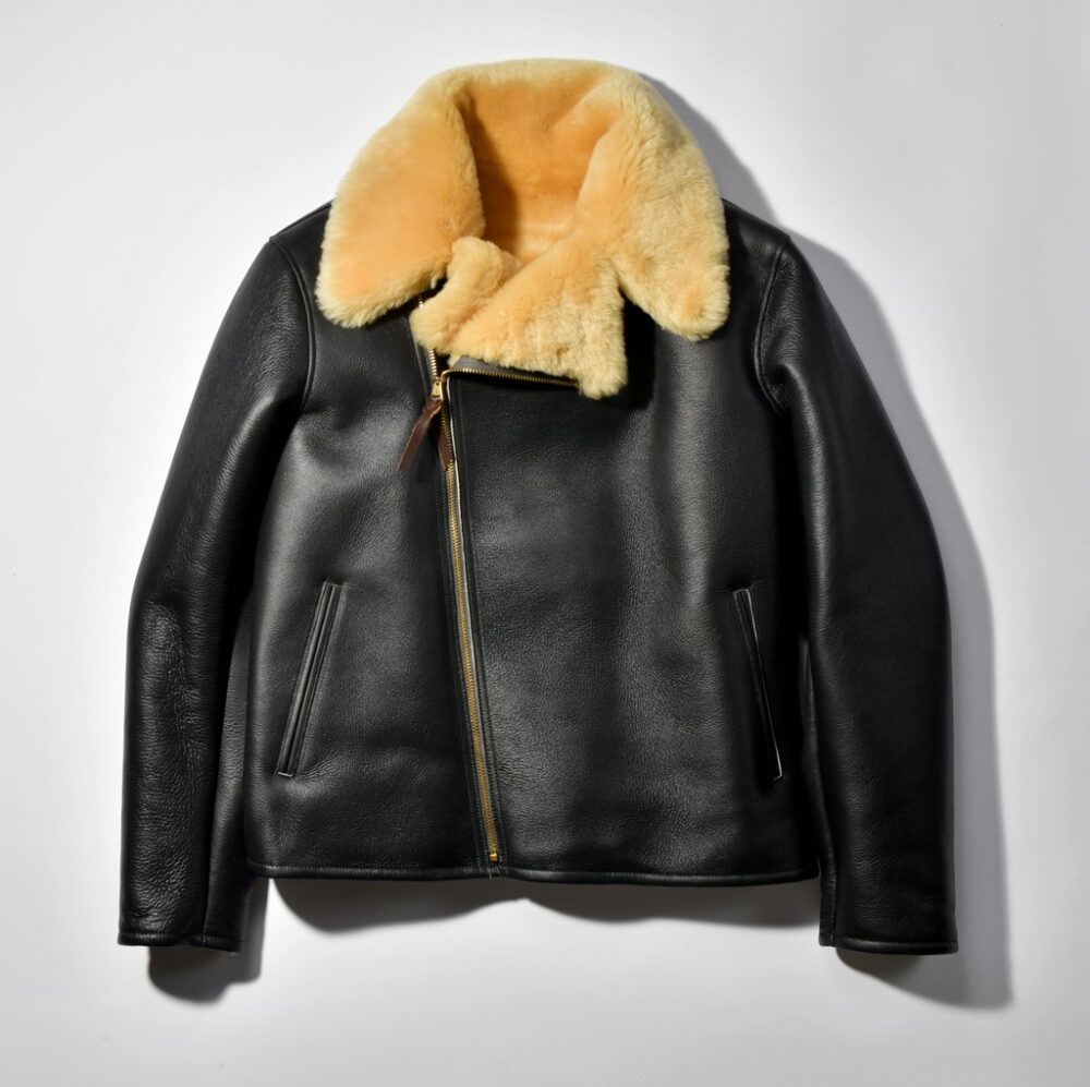 世界でもっとも歴史のあるタンナーであるスペインのコロメール社製のムートンを採用し、極力シンプルなデザインで仕上げたライダースジャケット。世界でも屈指のムートンの素材感を楽しめる1着に仕上がっている。¥305,800_