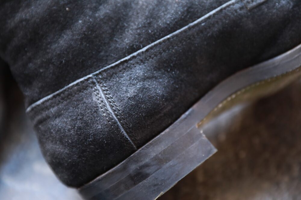 木型はGraham Bootsと同様ですが、パターンを試行錯誤することで、甲の部分の足当たりが良いだけでなく、ホーススウェードでもしなやかな素材になるので、馴染みやすいモデルになっています」