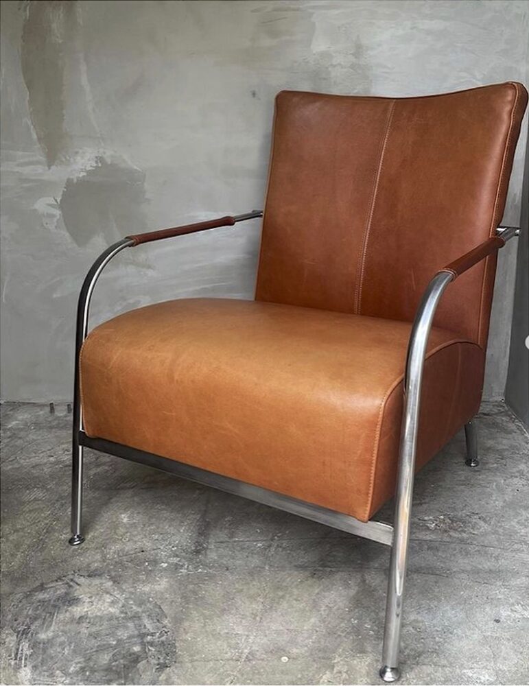 今回紹介するのは1970年代に欧州で使われていたシングルタイプのレザーソファ。これはサロンなどの待合室用にデザインされたモノで、肉厚なレザー張りの座面ながら、Rを描くメタルフレームによって、そこまで大きな存在感にならない秀逸なデザイン。重厚感としなやかさが同居する。