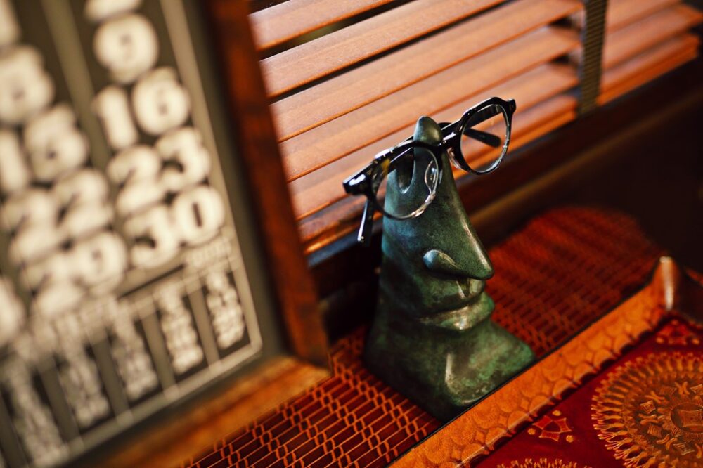 これはメガネのディスプレイとして使われていたアンティーク小物。クラシックに作り込むだけでなく、随所に洒落の効いた小物を置いた會田氏のセンスは見習いたいところ。