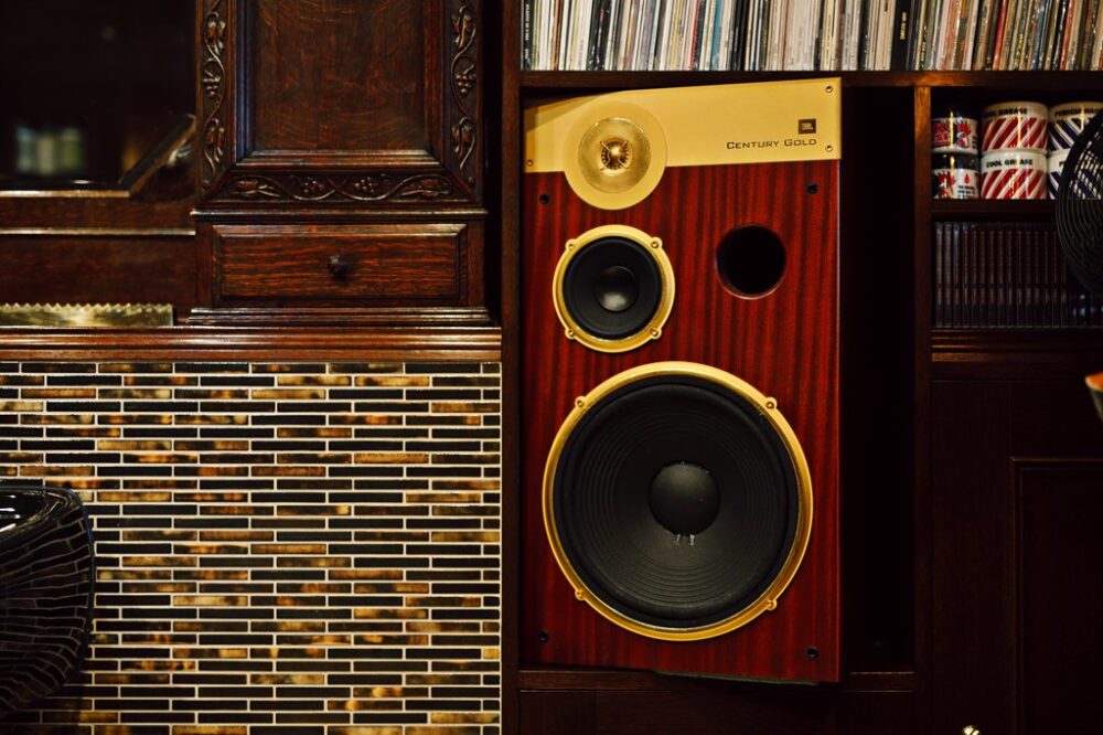 鏡の両脇にある1980年代のJBLのセンチュリーゴールドを使った音響システムで、好みの音楽を流してくれるのも嬉しいところ。