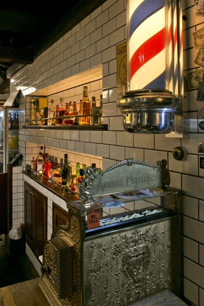 置かれている調度品の数々、サインポールやキャッシャー、ランプシェードなど、そのほとんどすべてがオーナー自らアメリカで直接買い付けてきた、もしくは取り寄せたヴィンテージアイテムで埋め尽くされている。しかも、デザイナーを入れずオーナー自らがデザインし、忙しい仕事の合間を縫ってタイル貼りなど施工も率先して手伝ったそう。こうした細部にいたるまでの徹底したこだわりが、にわかではない本物のバーバースタイルを生み出しているのだろう。