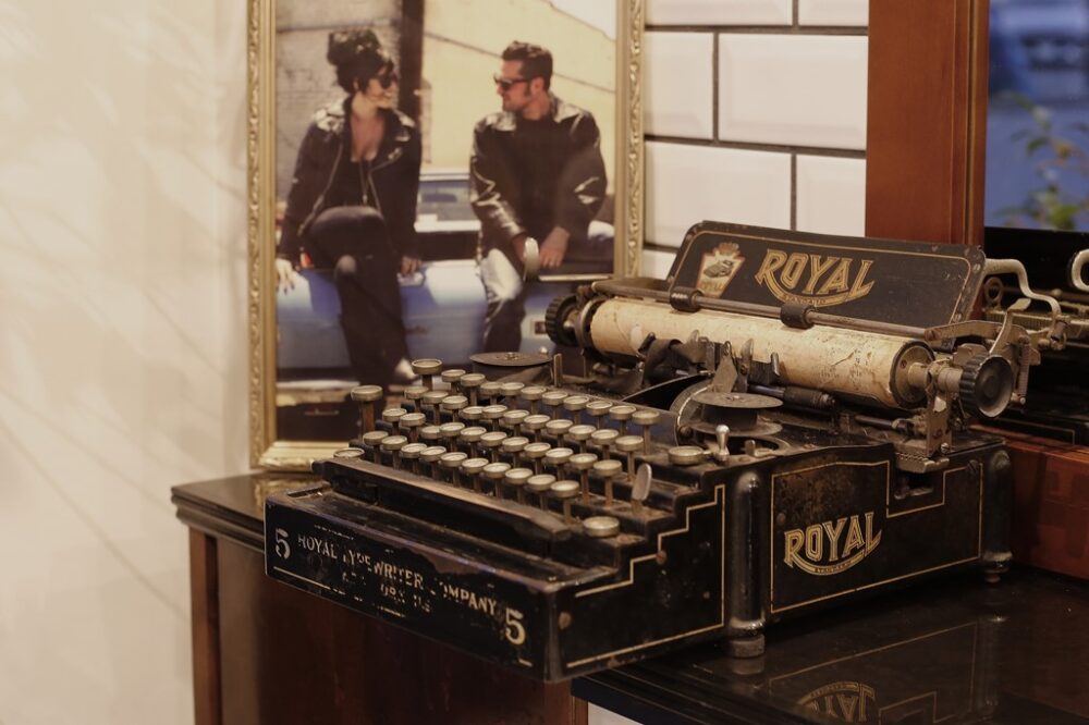 店内の一角にはヴィンテージのタイプライターが置かれ世界観を盛り上げる。後ろにはファッション誌『CLUTCH Magazine』の1ページが額装されており、何とも嬉しい限りだ。