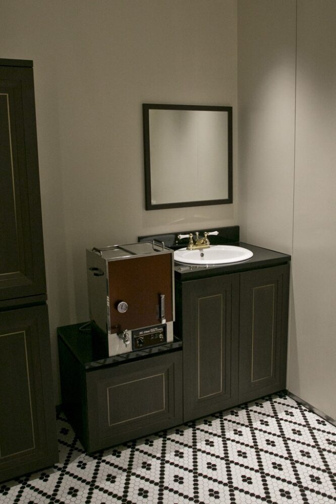 全面dunhillプロデュースのなか、インテリア面で働くスタッフの意向が取り入れられたのがこのコーナー。キャビネットや洗面台も全てオリジナルでつくられた特注品だそう。