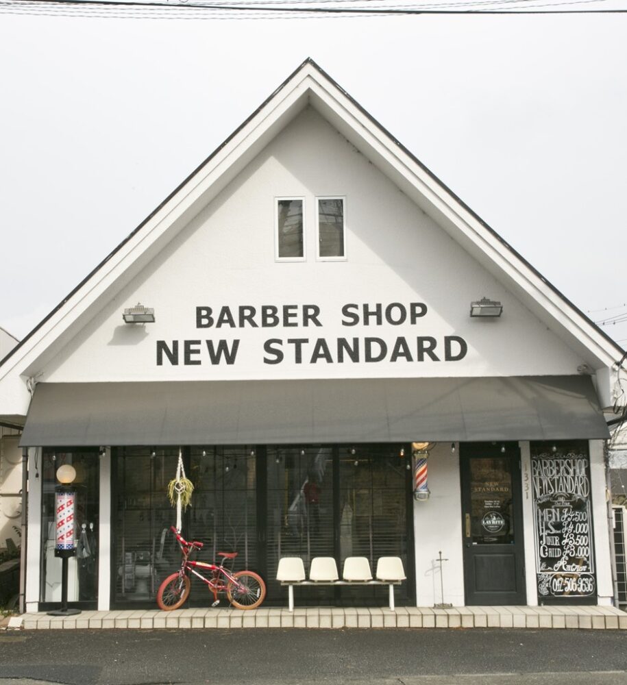 東京の多摩地区・高幡不動尊のほど近くにある三角屋根の建物が目を引くNEW STANDARD。その店内は、クラシカルなバーバースタイルをイメージしており、外観に負けない個性を放っている。
