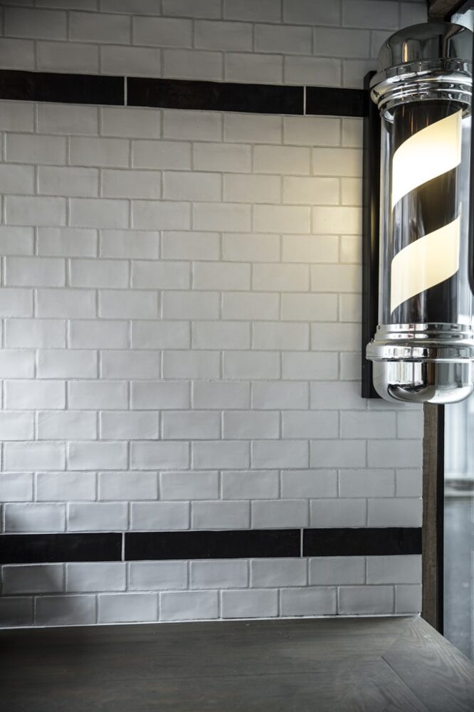 シャンプースペースの床には、ニューヨークらしいサブウェイタイルが敷き詰めている。味のあるインテリアが多いので、こういったクリーンな印象のタイル使いが、より際立っている。