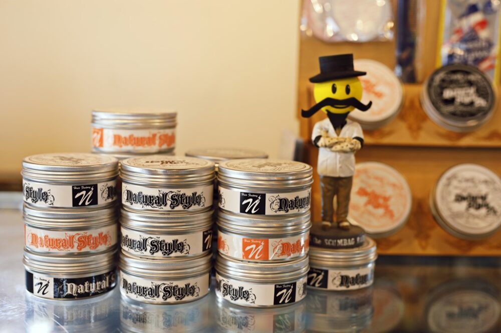 各社のポマードの成分を研究した上で、自ら材料を調合して作ったオリジナルポマード。何十回も失敗を繰り返して理想の配合にたどり着いたとか。剛毛な髪質にも合うハードタイプ。