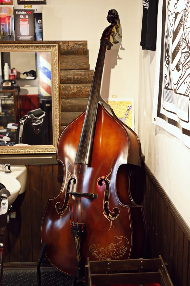 仲間とライブを行うために始めたウッドベース。実際にライブでステージに立ったのはまだ一度だけだが、冬場はクリッパーワークの前の準備運動として毎日練習しているのだとか。