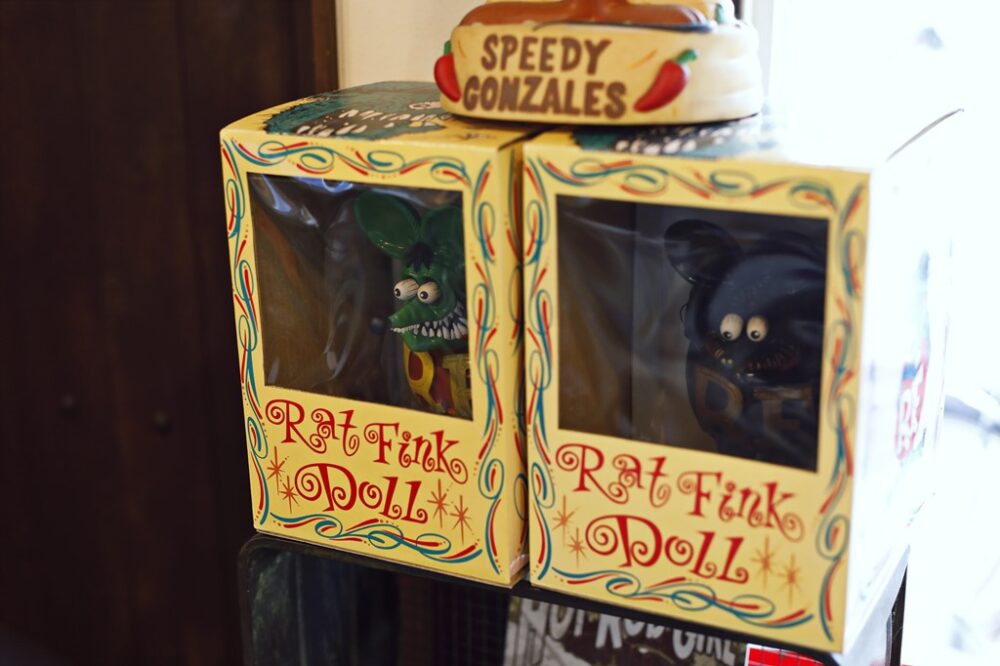 2000年代にMOON EYESから発売した限定カラー展開のRAT FINK DOLL。スタンダードとブラック&ゴールドを所有し、店内にディスプレイしている。
