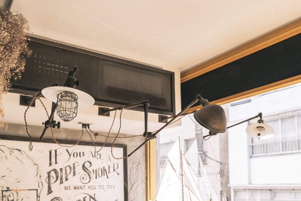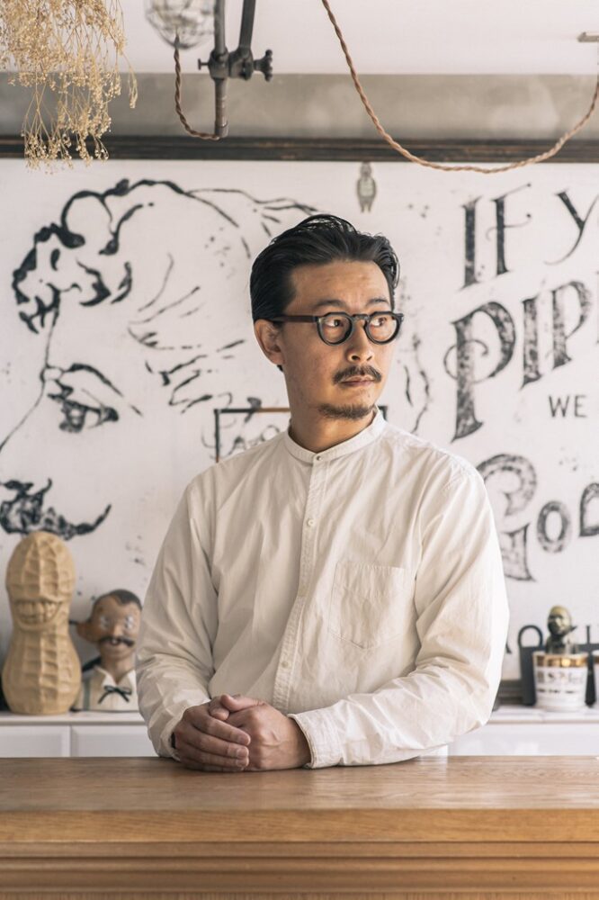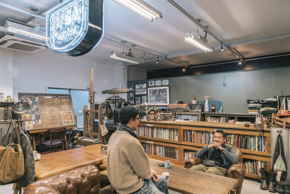 店内には、ヴィンテージのインダストリアルファニチャーの中でも人気の高いジャパンカラーの仕様やO.C.WHITEのランプなど、長尾氏の目利きぶりが発揮されている。またヴィンテージのような看板は、NUTS ART WORKSが同店のために描き上げた作品。什器はワンオフとヴィンテージをセンスよくブレンドさせており、なんとも個性的な空間に。それでいてワイルドすぎないバランスが秀逸だ。