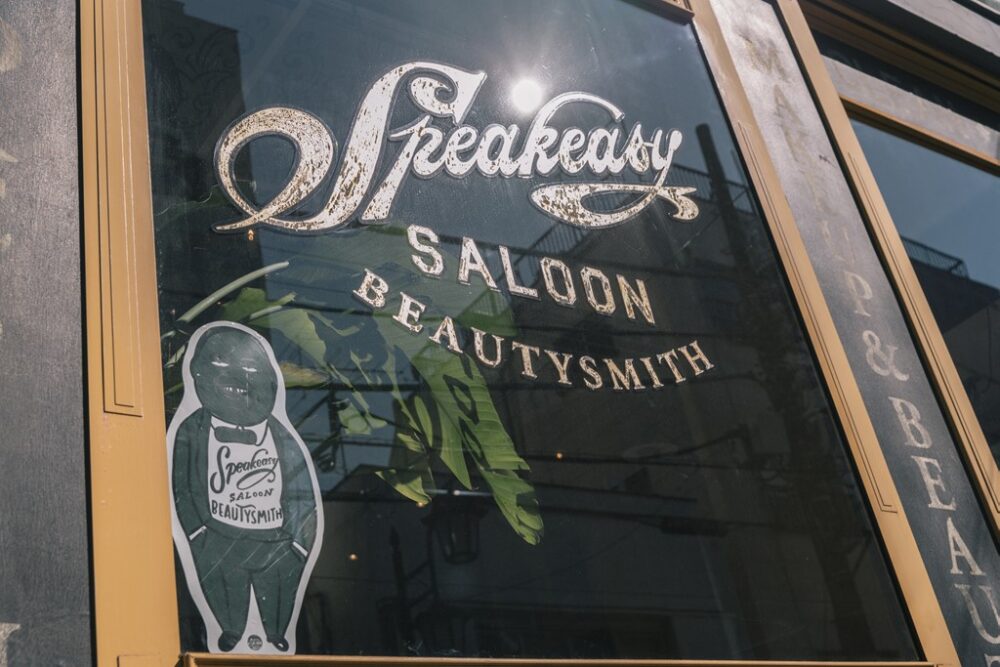 代々木上原駅から代々木八幡駅へ繋がる、どこか懐かしい雰囲気が漂う商店街に突如現われるクラシックなサインペイント。ここが長尾氏の手掛けるスピークイージー サルーン ビューティースミスだ。その店名とビジュアルから連想できるように、1920年代のアメリカ禁酒法時代の隠れ酒場をコンセプトにしている。