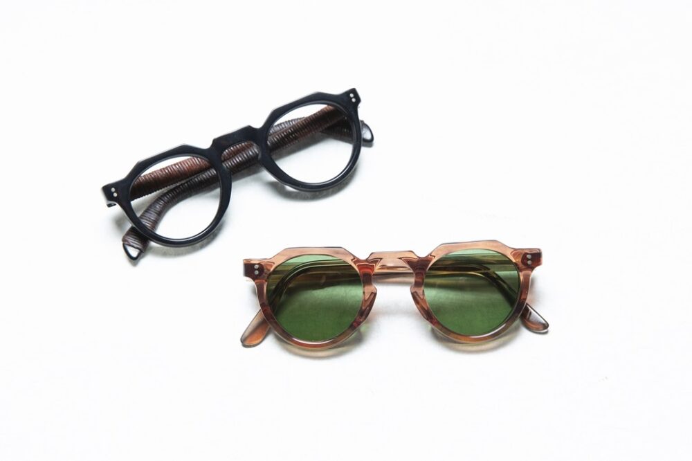 親交の深い石川の名店PHAET ONで購入したというヴィンテージのフレンチフレームは、1950年代のもの。フランスらしいクラウンパントのデザインが気に入り色違いで購入した。