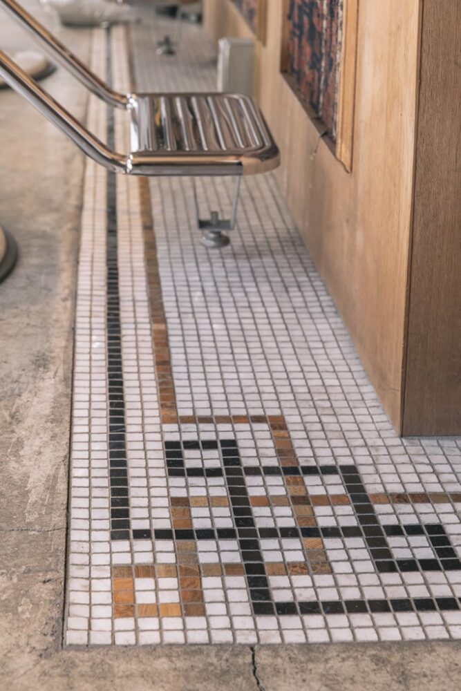 旧きよき時代の雰囲気を表現しながらも、モダンな印象を与えている要因のひとつが、随所にあるタイルワーク。長尾氏はSpeakeasy Tile Cra ftsmanの名義でタイルアーティストとしても活躍している。これらのアートワークはすべて長尾氏によるもの。同店だけでなく、洋服店や飲食店などの施工も多く手掛けており、直接オーダーすることも可能だ