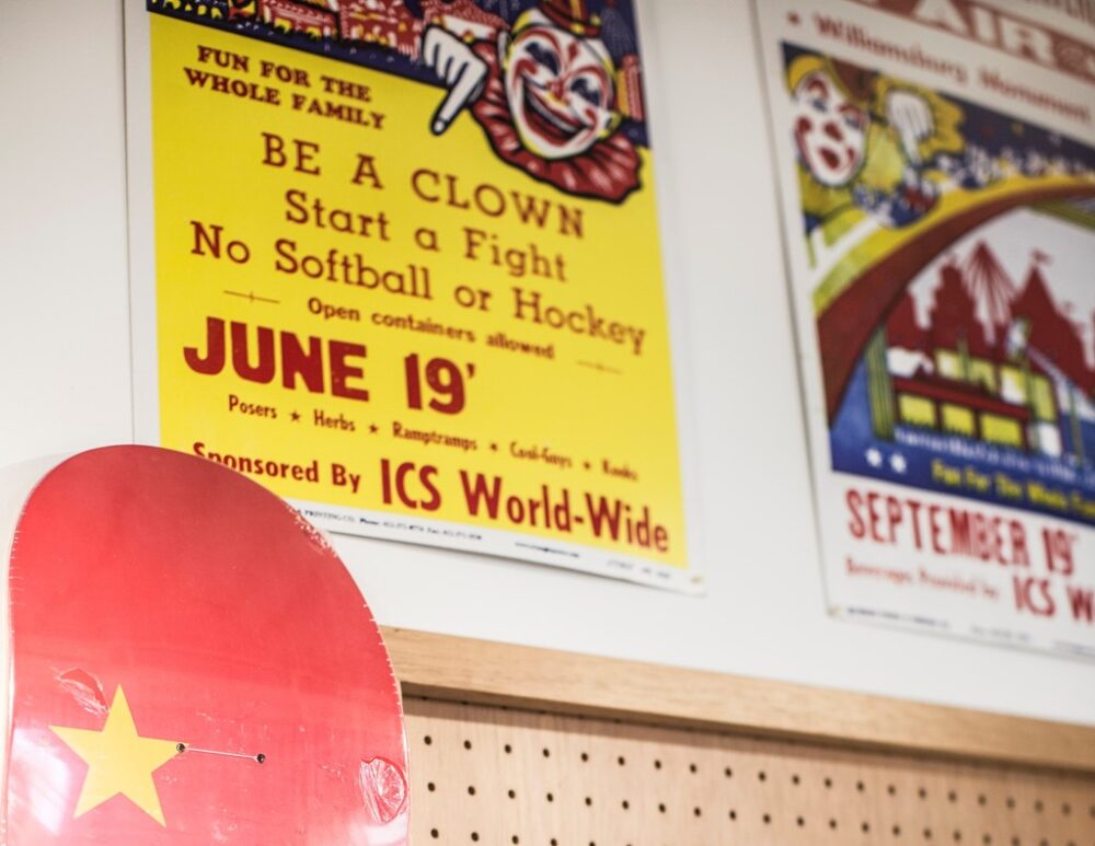 IRON CLAW SKATESのラーカー・ルーによる遊び心満載のシルクスリーンポスター。