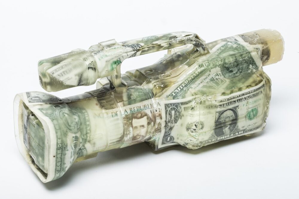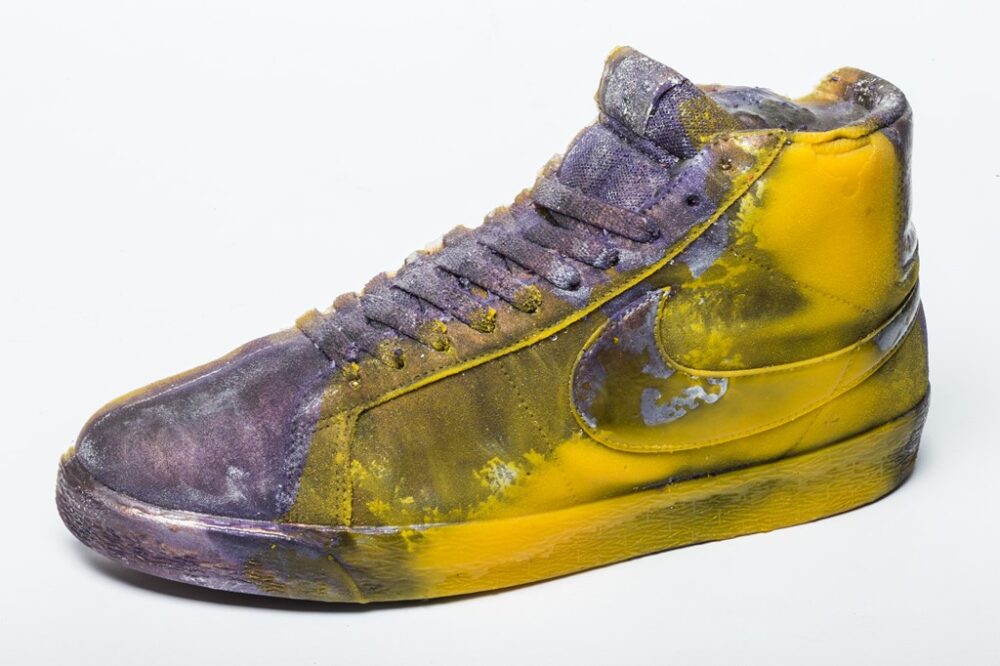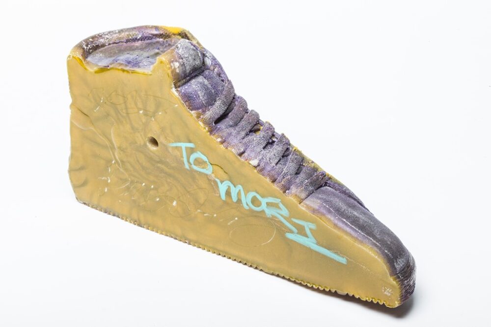 ラーカー・ルーによるこれらアートピースは、彼が好きなモチーフのシリコン型をとったユニークな技法。上はスケートビデオVX1000の型枠にお札を詰め込んだ。中・下はブレザーハイがモチーフ。共に本人からの頂きもの。