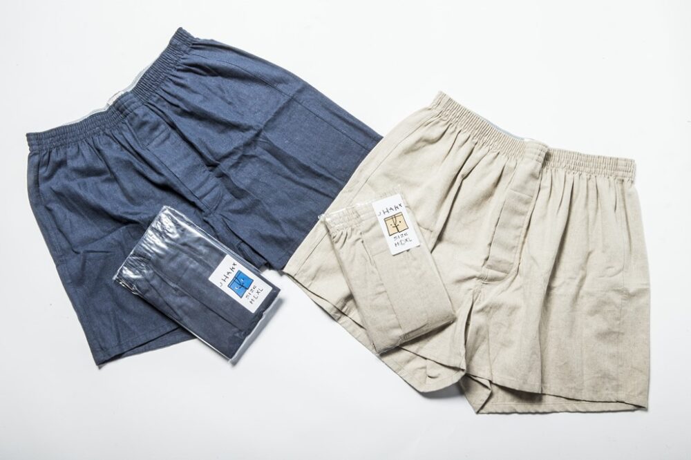 下着は大人の嗜みとしてこだわりたい。森下氏が手掛けるJHAKXのトランクスはシンプルなデザインでヘンプ混の生地が肌ざわり抜群。