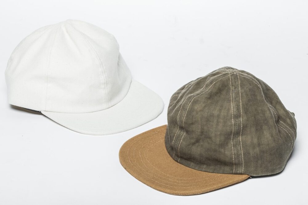 ハンドメイドでユニークなキャップを製作するFALCON BOWSEだが、シンプルなデザインも展開。右はJHAKXとのコラボとなる。