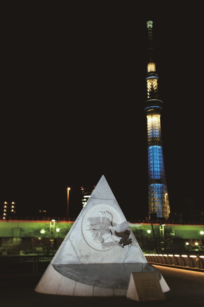 東京の某所で撮影した森下氏のスケートライディングフォト。オーリーで乗り上げ、壁にノーズジャム。東京らしさが感じられる背景もフォトジェニックだ。