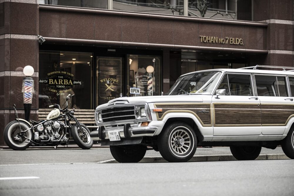 昔からの常連客でもあるラグビー日本代表選手である田村優選手から譲り受けたというグランドワゴニアはキャンプなどで活躍中。ウッドパネルがオールドアメリカンな雰囲気を醸し出す。