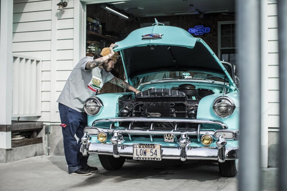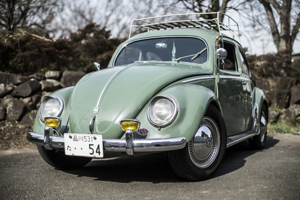 1954年製のVolkswagenビートルはオーバルウインドー、ハートテイルのディテールを持つファン垂涎のモデルだ。淡いグリーンも彼が好きなカラーなのだという。