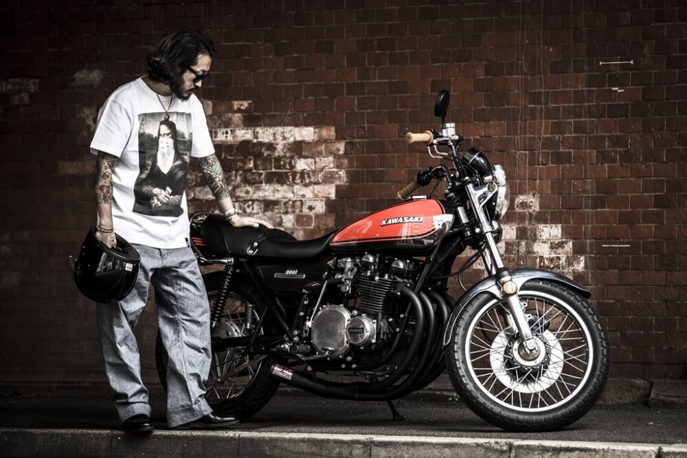 カワサキのZ1は1972年から1976年にかけて欧州、北米市場に向けて作られた日本が世界に誇る名車。火の玉カラーと呼ばれるオレンジのタンクがTOM氏のお気に入り。