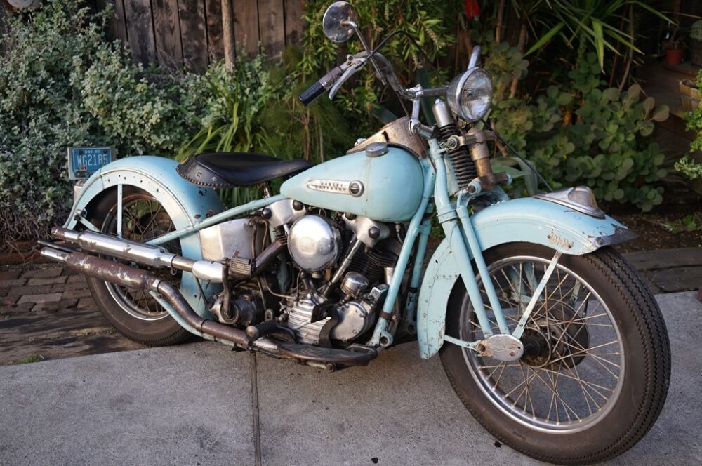 1947年製のHarley-Davidson FL、いわゆるナックルヘッドは長年探し続けていた夢が叶った1台であるため思い入れも強い。その日の天候や気分でバイクやクルマを乗り分けるという。