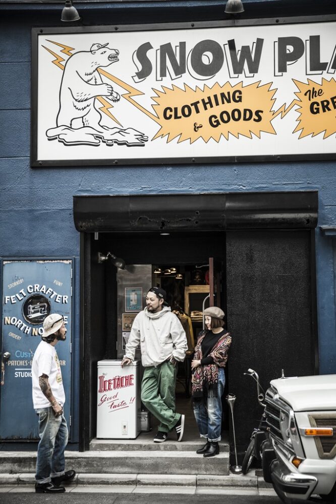 台東区浅草でヴィンテージウエアや雑貨を扱うSNOW PLANTを営む堀川氏とは同郷で兄のように慕う。彼が手掛けるNORTH NO NAMEのウエアはTOM氏のユニフォーム。