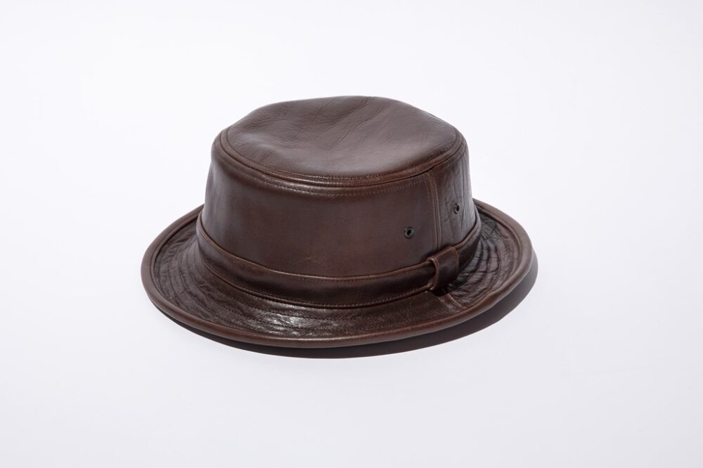 Mr.FATMANとコラボレーションしたオリジナルのレザーハット。ブラックとブラウンの展開。本革を使っており、カジュアルなデザインの中に、上品なテイストを落とし込んでいるのがポイント。