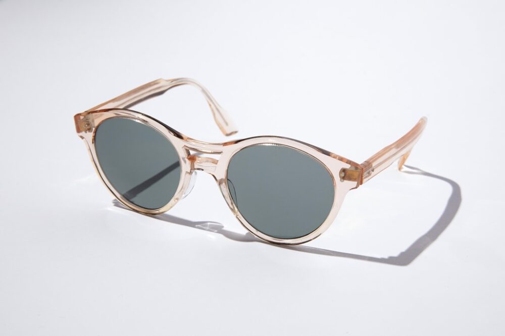 原宿にあるヴィンテージアイウェアの専門店であるソラックザーデで購入したフレンチ製のクリアフレーム。珍しいダブルブリッジのデザインが気に入っている。デッドストックなので状態も完璧である。