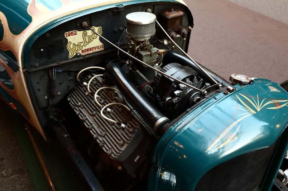 オリジナルはフラットヘッドの直列4気筒エンジン(4バンガー)だが、’50年代のFORD製フラットヘッドV8にスワップし、走りをアップデートさせている。