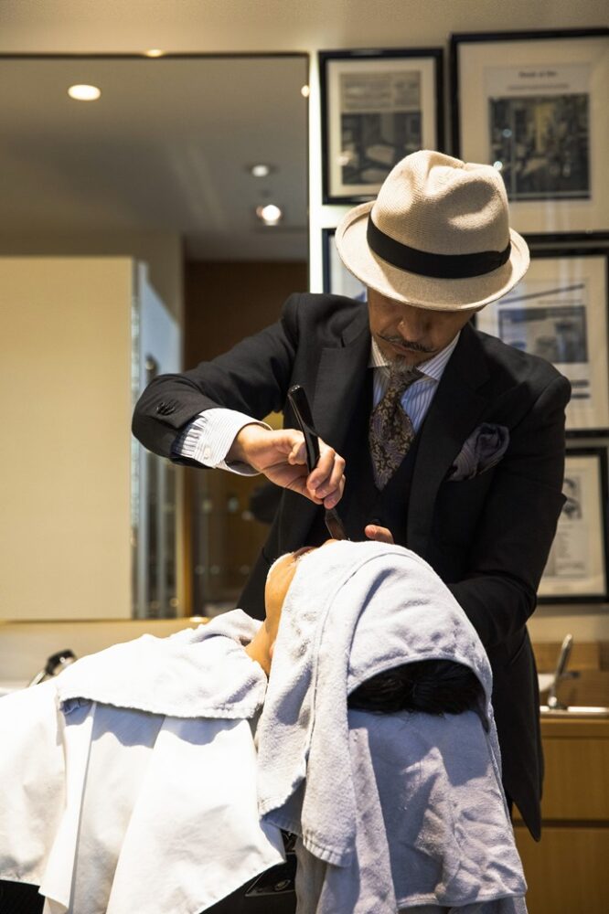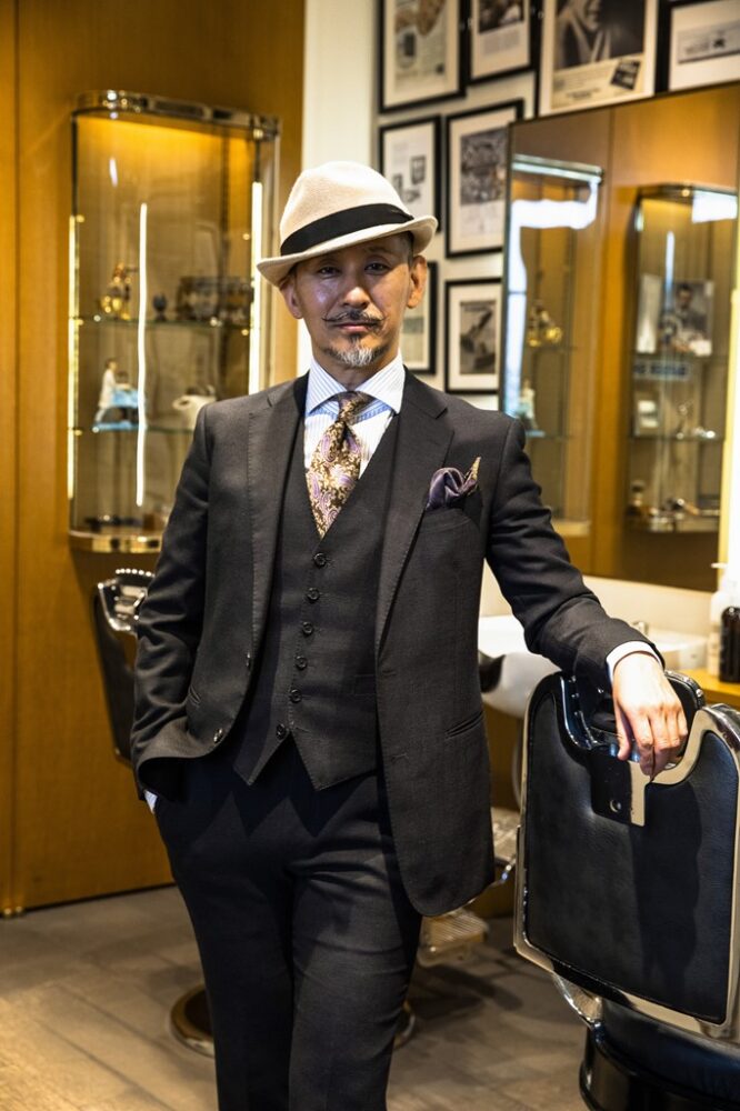 「なにせお店のあるこの場所は国内の西洋理容発祥の地。そこで、文字通り襟を正した着こなしがふさわしいと考えました」