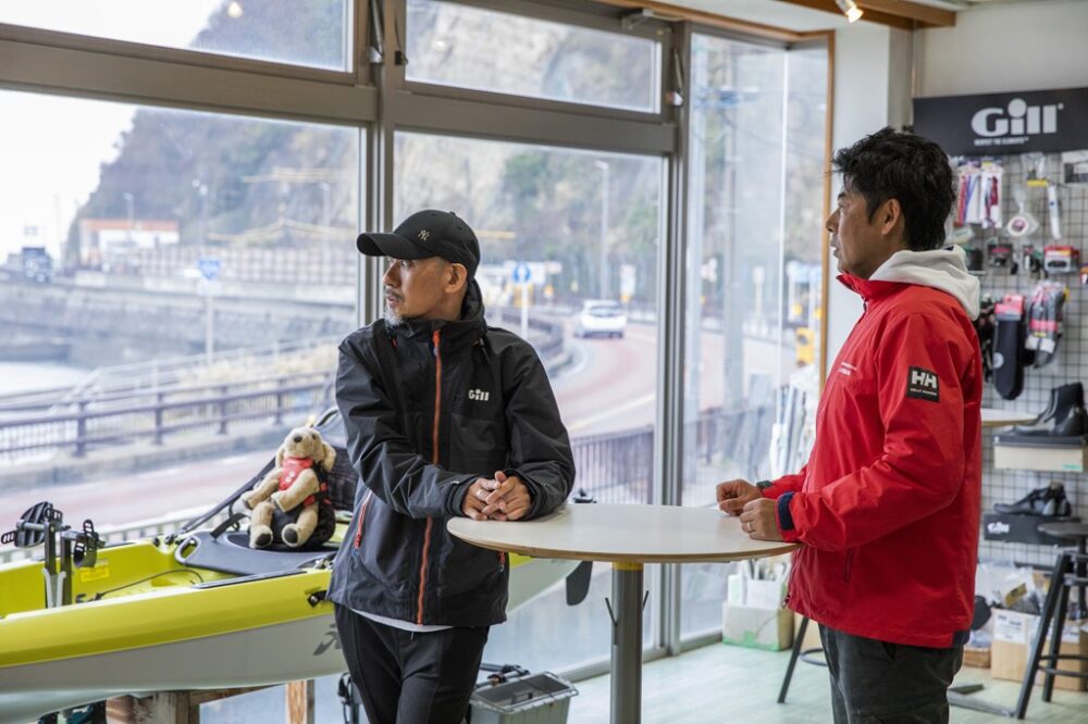 ヨット熱再燃のきっかけを作ったのが、今や行きつけとなっているMARINE BOX100のマネージャー、沼野氏。「逗子の海が待ってますよ、の言葉にやられました(笑)」