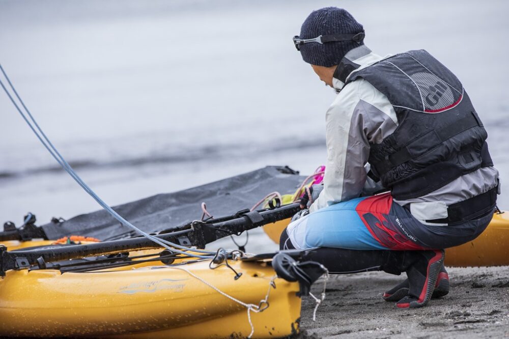 船を入念にチェックし、各所をつなぐロープを結びつける。その素早い手さばきからは、経験に基づく自信が伺え、背中からは楽しさで心躍っている様子が伝わる。
