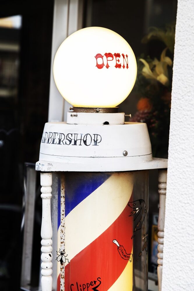 クラシカルなバーバーのサインポールには、センスの良いカスタムが施されている。旧きよき時代のアメリカンカルチャーに造詣が深い清水氏ならでは。