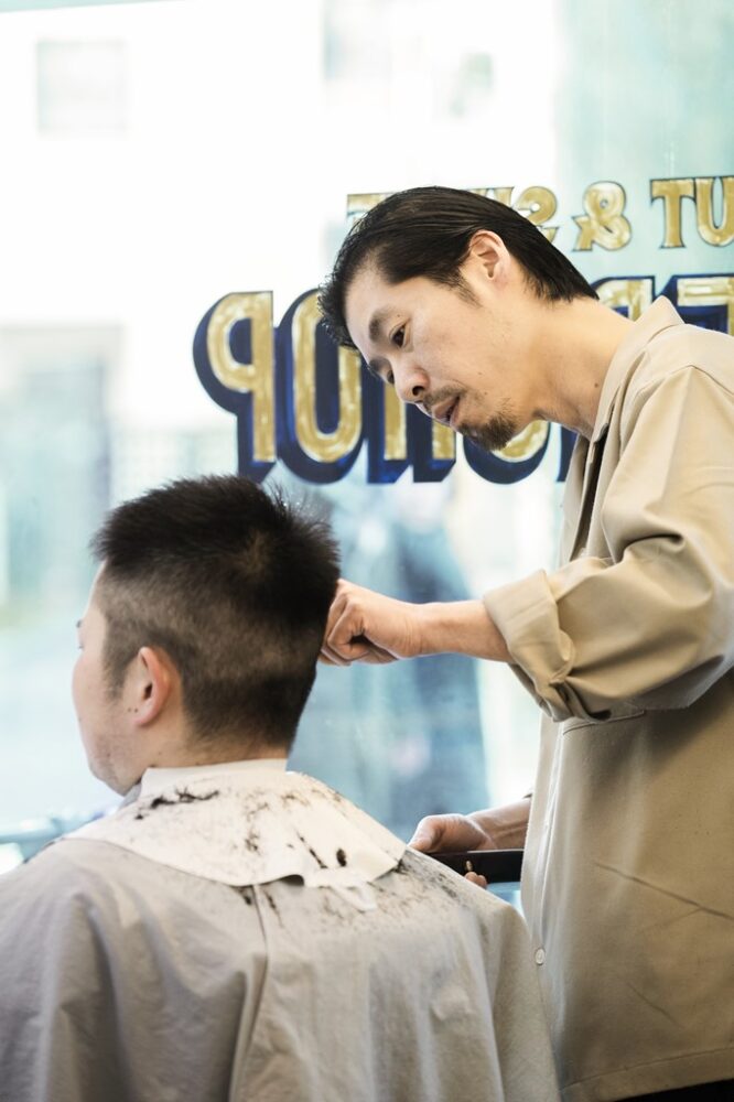 清水氏のスタンスは独特。基本的に自身からヘアスタイルを提案することはなく、お客さんの要望をできる限り受け入れる。これは幅広い技術を持っているからこそできる芸当であろう。中でも最も得意とするのはクラシカルなフェードスタイル。