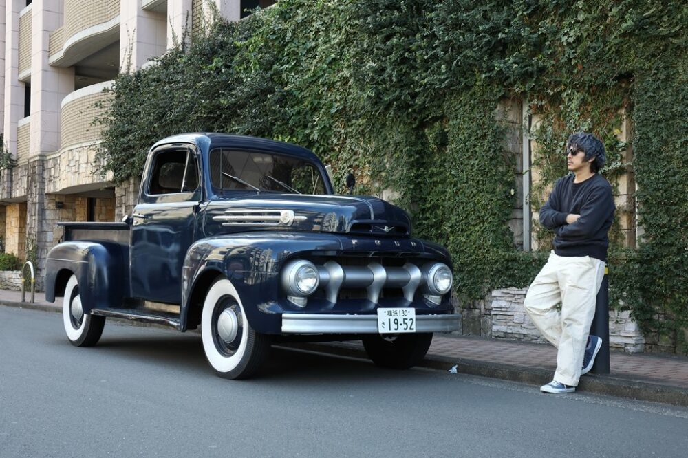7年ほど前に購入したというFordのF-1は、長い歴史を持つフルサイズのピックアップトラックシリーズ。フロントグリルの形状が特徴的な1952年製。