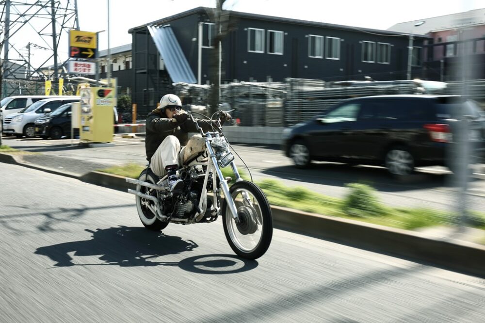 天候の良い日には自身のショップがある渋谷区富ヶ谷まで通勤の足として乗っていくという鈴木さん。新たに購入したナックルヘッドは両足のステップ位置が高いことに驚きだ。