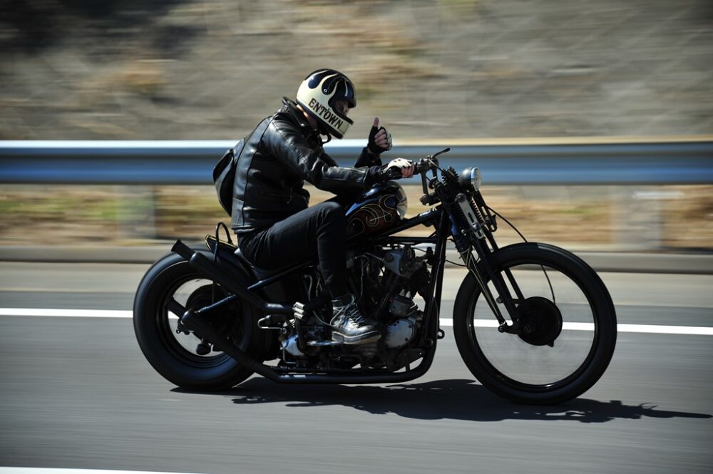ヴィンテージのHarley-Davi dsonを、かれこれ5台ほど乗り継いできた円崎氏。現在の愛馬は1946年製のELナックルヘッドで、かれこれ10年以上乗り続けているという。